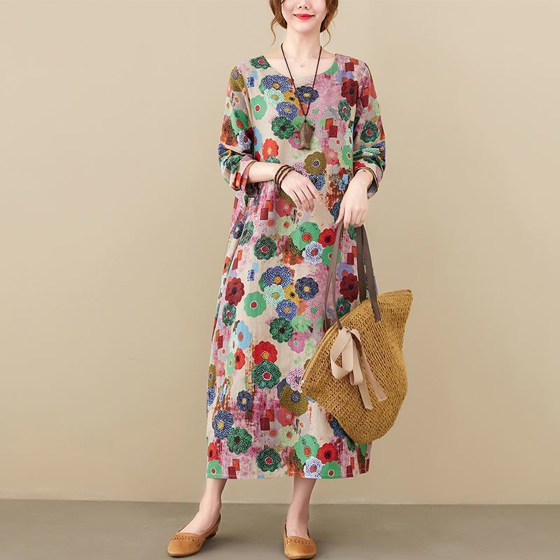 Vintage Floral Dress from the Gusaino collection. Made from classic high-quality cotton and linen. The design fits various stylings, feel free to match it with your style.